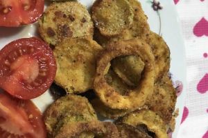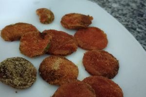 - Dilimleyip ıslaklığını aldığımız kabaklarımızı önce süte daha sonra hazırladığımız baharatlı karışıma batırıyoruz. (Baharatlı karışıma elimizle iyice yediriyoruz üstüne iyice yapıştırmak için )