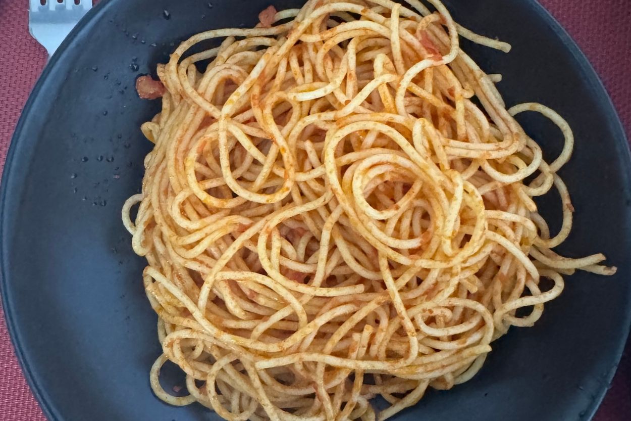 - Haşlanmış spagettiyi sosun içine alıp 1-2 dakika birlikte çevirelim, böylece sos makarnaya daha iyi yapışır.