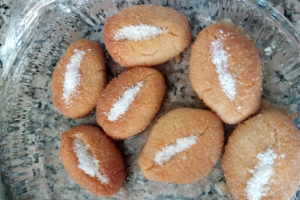 Hazırladığınız hamur karışımından ceviz büyüklüğünde parçalar alın. Elinizle badem şeklini verin. Yağlanmış fırın tepsisi üzerine dizin. Bıçak yardımı ile orta kısımlarına kesikler atıp, hafifçe hamuru açın.