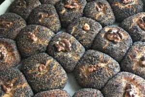 Önce irmikli hamurumuzu hazırladık. Fırına vermeden önce bir güzel mavi haşhaş tohumlarına buladık. Yetmedi birer parça ceviz kondurduk üzerlerine. Fırında güzelce kızartıp, şerbetin içinde yüzdürdük. Nasılsa sıkı bir diyete girer, tüm fazlalıklarımızdan kurtuluruz diyerek afiyetle yedik.