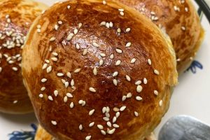 - Üzerine 1 tatlı kaşığı zeytinyağı ile 1 adet karıştırdığımız yumurta sarısını sürün. Üzerine 1 yemek kaşığı susam ya da çörek otu serpin.