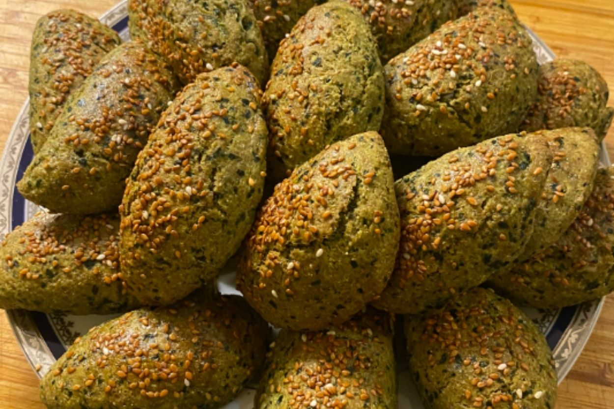 - Yağlı kağıt serilmiş olan fırın tepsisine dizelim. Üzerlerine yumurta beyazı sürüp susam serperek önceden ısıtılmış 180 derece fırında 35 dakika pişirelim. Tam buğday unlu labneli yeşil poğaçamız hazır. Afiyet olsun.