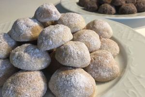 - Hamur elinize yapışmayacak hale gelecek ve kesinlikle katı olmayacak. Ardından cevizden biraz küçük yuvarlaklar yapın. Yağlı kağıt serilmiş tepsiye dizin ve 180 derece önceden ısıtılmış fırında sadece 13 dakika pişirin.