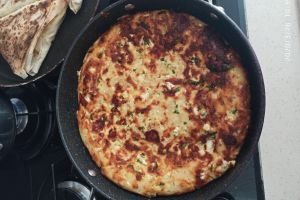 - Yapışmaz tabanlı bir tavaya az miktar zeytinyağı ekleyip, hazırladığınız karışımı tavaya yayın ve altı kızarana dek pişirin.