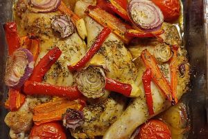 Önceden haşlamaya bile gerek duymadığınız tavuk bagetler ve onların daha da iyi kızarmasını sağlayacak içerisinde balın yanı sıra pek çok baharatın bulunduğu marinasyon karışımı... Tabii bunlarla da bitmiyor, tavuk baget tarifinin lezzeti daha da artsın diye kırmızı soğan, sarımsak, dolmalık kırmızı biber, biberiye ve cherry domatesler yardıma geliyor. İsterseniz patates bile gelir, öylesine uyumlu bir tavuk tarifi bu. Marinasyon karışımına bulanan bagetler kendi suyunda nar gibi kızarıyor, başlı başına güzel bir seçenek olan tavuk yemeğini arzu ettiğiniz garnitürler tamamlıyor.