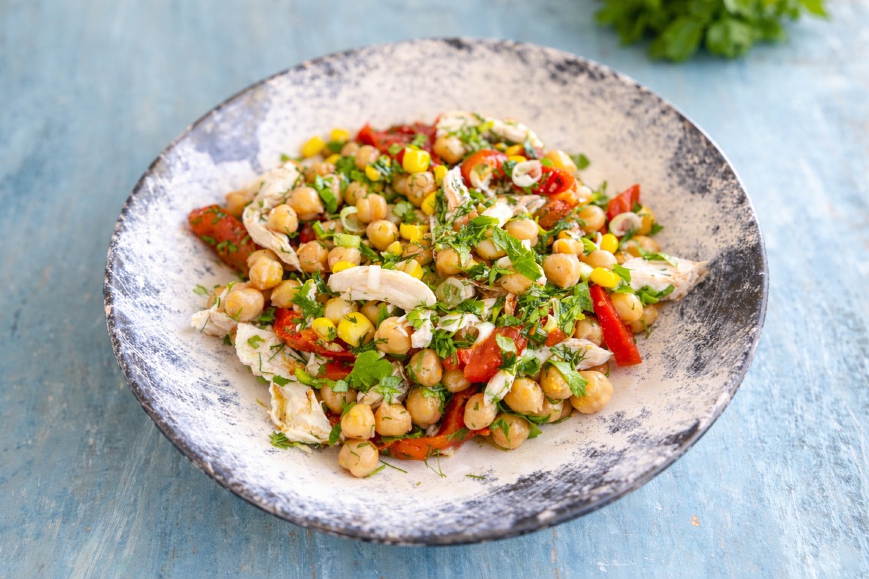 Sağlıklı ve doyurucu salata tarifleri der daim canımızdır. İşte tam da öyle bir tarifle karşınızdayız. Tavuklu nohut salatası, protein açısından oldukça dolu dolu olup enerji verici de bir seçenek üstelik. Haşlanmış nohutun tokluğu, didiklenmiş tavuğun doyuruculuğu, közlenmiş kapya biberin köz aroması ve taze yeşilliklerin ferahlatıcı dokunuşu... E daha ne olsun?