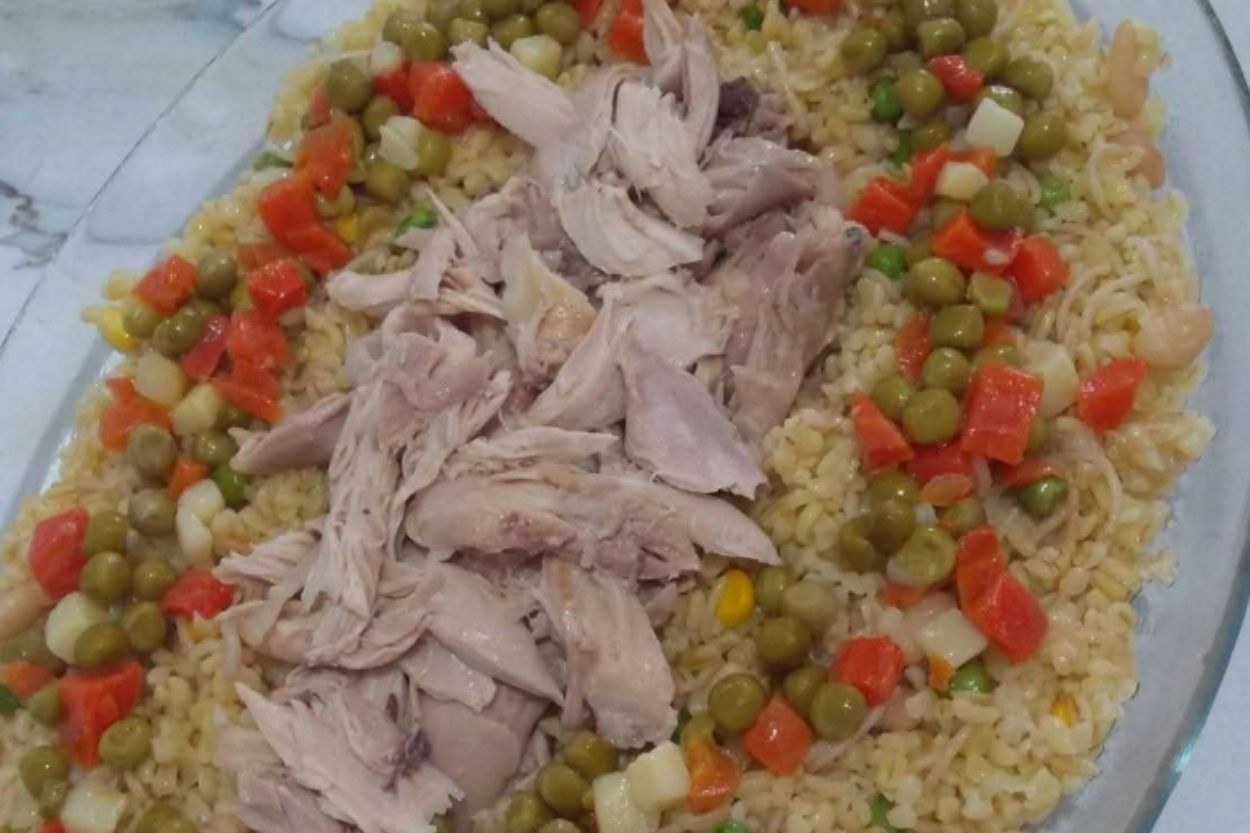 - Tavuğu didikleyelim ve pilavın üstüne koyalım. (İstediğiniz şekilde servis edebilir, tavukları pilavla karıştırabilirsiniz.) Tavuklu şehriyeli bulgur pilavı hazır. Afiyet olsun!