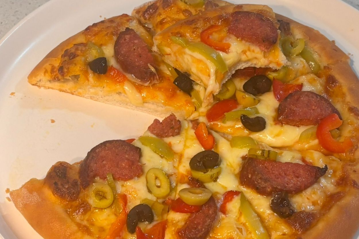 - Üzerine hazırladığımız sosu kenarları hariç her tarafa gelecek şekilde sürüyoruz. Sırasıyla altına kaşar peyniri, üzerine sucuk, ardından zeytin ve biberleri diziyoruz. Hamurlarımızı dondurucuya koyacaksak tepsiyle birlikte dondurucuya alıyoruz. Donduktan sonra streç film ile sarıp tekrar dondurucuda saklıyoruz.