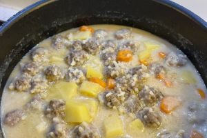 - Üzerine köfteleri ilave ediyoruz. Bir kasede yumurta sarısı ve limon suyunu güzelce çırpıyor ve tencereye ilave ediyoruz. Pişmeye bırakıyoruz. Afiyet olsun.