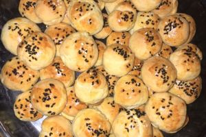 - Hamurdan minik minik yuvarlaklar yaparak yağlı kağıt serili fırın tepsisine dizelim.