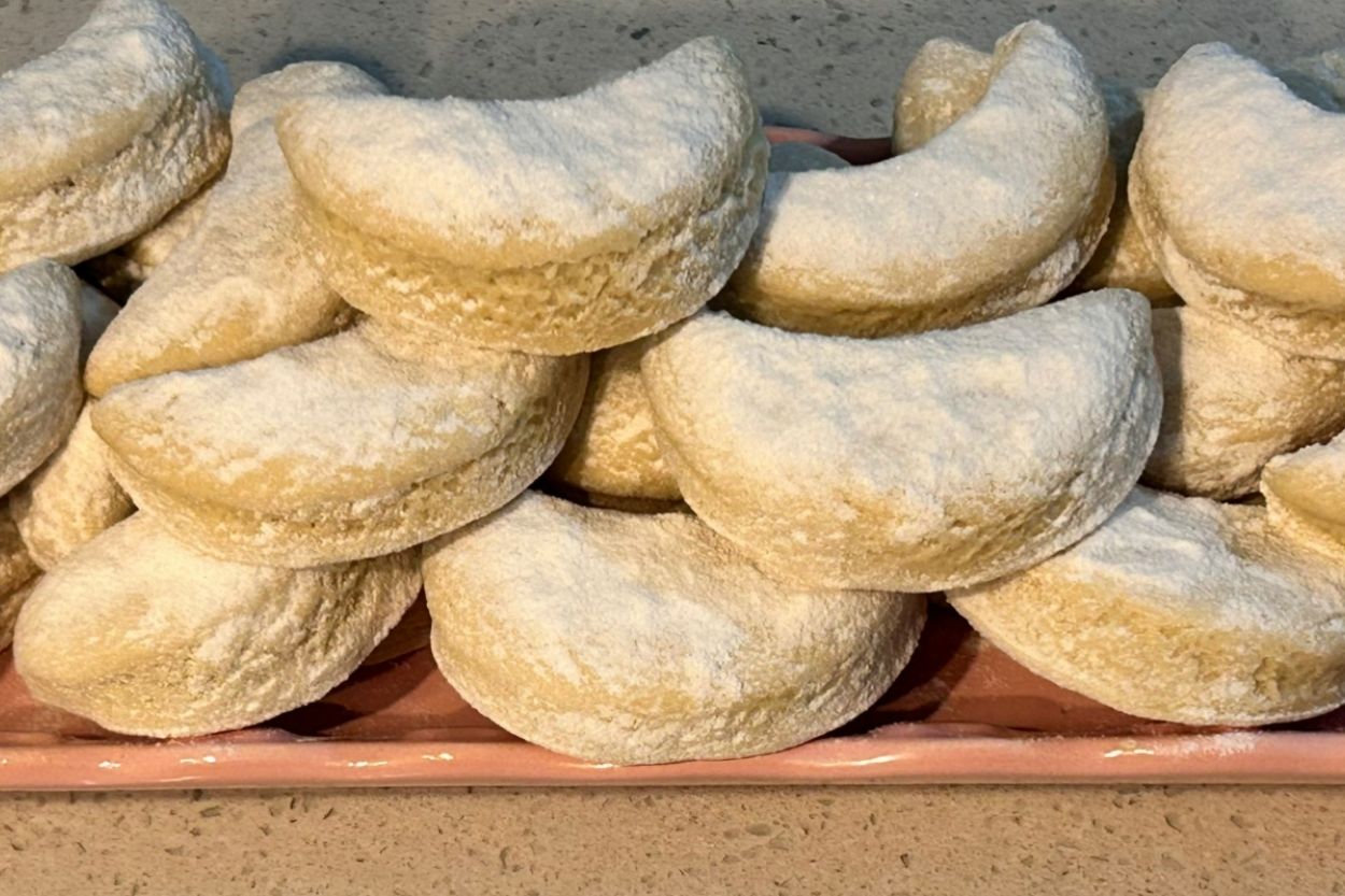 - Yoğurduğumuz hamuru tezgaha alıp merdane yardımı ile 1 parmak kalınlığında açalım. Çay bardağı yardımıyla ay şeklinde şekil verelim. Yağlı kağıt serdiğimiz fırın tepsisine dizelim.