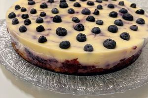 - Soğuyan kekin üzerine yaban mersini marmeladını/reçelini dökelim ve her tarafa eşit şekilde yayalım.