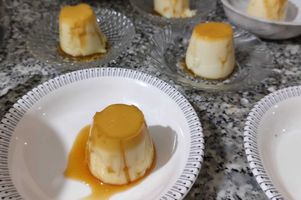 - Hazırladığımız muhallebiyi, tabanında karamel olan kaselerin üzerine dökelim.