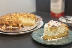 İçerisinde aslında quark kullanılan bu tarif, ''Alman usulü cheesecake'' olarak da biliniyor. Cheesecake diyoruz çünkü dokusu ve lezzeti itibariyle cheesecake'i andırıyor. Ancak ondan çok daha hafif. Tarifi uygularken biz daha ekonomik ve kolay ulaşılabilir olması açısından yoğurdu tercih ettik. Dilerseniz aynı oranda quark kullanarak da tarifimizi deneyebilirsiniz. Kullanacağınız süzme yoğurdun koyu kıvamlı olması da mühim. Aklınızda bulunsun.