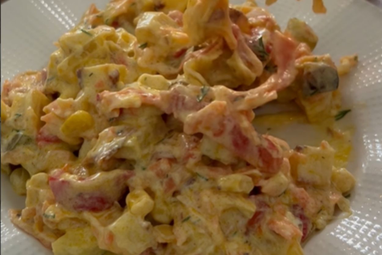 - Sos için tüm malzemeleri karıştırıp salatanın üzerine ekleyelim ve nazikçe harmanlayalım.