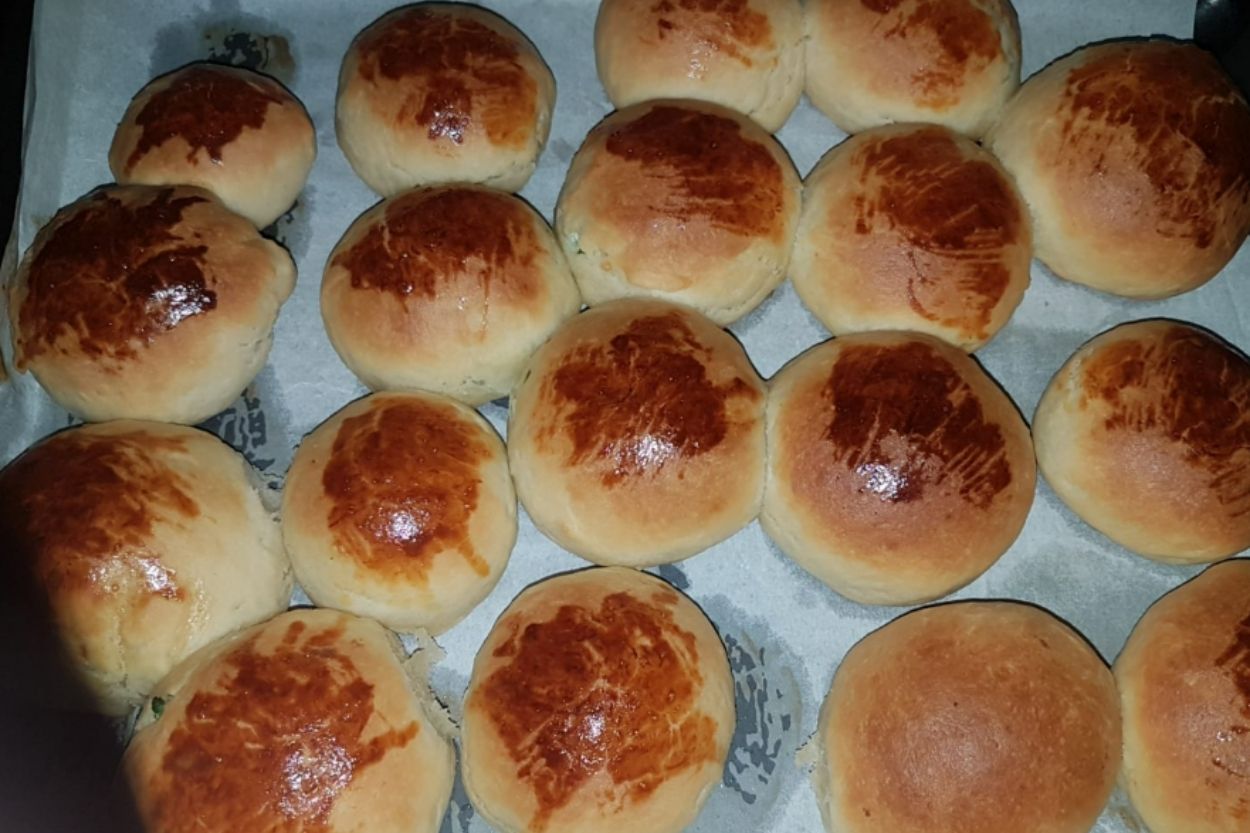 - Ardından 180 derece fırında 30 dakika pişirelim. Yumuşacık puf poğaça hazır! Afiyet olsun.