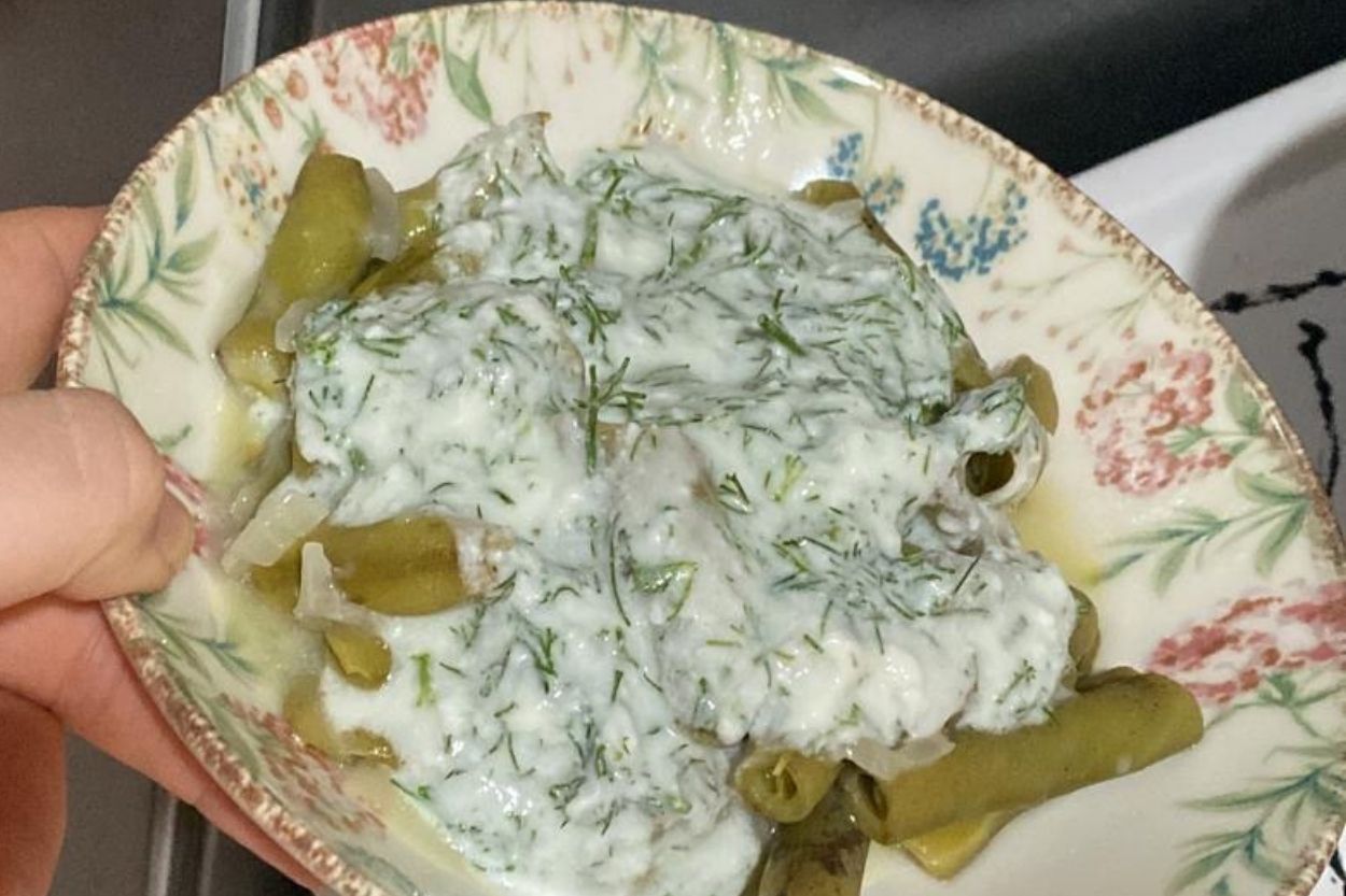 - Baklalar tamamen piştiğinde ocağın altını kapatalım. Yoğurt ve ince doğranmış dereotunu ekleyerek servis edelim. Zeytinyağlı bakla yemeği hazır! Afiyet olsun.